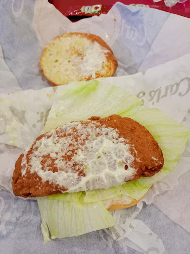 Read moreEl día de hoy fuí a este Carls Jr y me atendió un tipo rapado con gorra, no le di importancia a su nombre, el tema es que pedí una double famous star sin jitomates y combo mediano. Me ofreció un refresco de taparosca y me confirmó que sí tenían coca sin azúcar. Al momento que me entregó me dio una coca normal (sabiendo que me había dicho que si tenia sin azúcar) y me dice que no tenían y que me lo puede cambiar por vaso pero tendría que ser vaso chico y no mediano. Total por la prisa que traía tuve que irme así, pero al llegar a casa me dí cuenta que aparte la hamburguesa solo tenía una carne y yo la pedí doble, tenia mas verduras que carne. Pésimo servicio del tipo, la hamburguesa aplastada, parecía vegana, refresco que sabe a agua, se aprovechan que la gente pide para llevar y como saben que normalmente no abren sus pedidos hasta que llegan a casa o trabajo puede entregarles lo que quieran y cobrar de más, y el tema del...