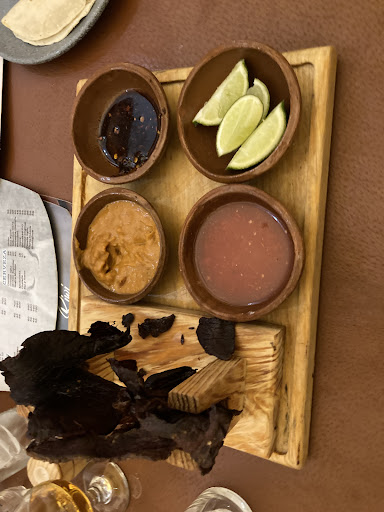 El lugar es muy agradable, pero se ve poco espacio, la casa parece finca antigua la cual guarda muchos detalles y le da ese plus al concepto, tiene imágenes de la región lo cual genera una armonía, en cuanto a la comida es muy buena al parecer tienen chef, las porciones son muy pequeñas pero quedas poco satisfecho, tendrás que pedir un platillo a físico al o una entrada. los precios son elevados a mi parecer. Sin duda es un lugar para pasar un rato agradable con tu pareja o familia. La atención del personal es buena pero se saturan cuando hay mucha gente. Estaría genial que dieran cortesías de tequila o mezcal. Son de los lugares que me agradan pero no visitaría...