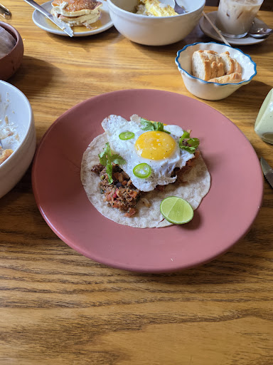 Can I give this 10 stars? ... This place exceeded my expectations by a long mile. It was amazing all around. Friendly staff, great atmosphere, and the food was delicious. My wife had the chilaquiles and pancakes. I tried both and both were really good. The pancakes are filled with cheese which gives them a unique taste. I had the chicharrón verde and a taco de machaka. Both dishes were absolutely amazing. the chicharrón en salsa verde was very flavorful and the taco had an egg over it. The taco accompanied with their delicious green hot sauce was a great combination. We absolutely loved...