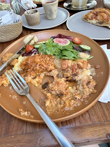 Pedimos unos omelets con chicharrón y frijoles. Que llegaron en un emplatado bonito pero impráctico, con la ensalada sobre el omelete. El sazón es peor que básico, desabrido, insípido. Hasta pedimos sal, y aunque le agregamos bastante no logramos que mejorara gran cosa. Nunca había probado un chicharrón y unos frijoles tan raros, como que quisieron innovar en la preparación, o trataron que fuera más saludable, pero solo consiguieron que la comida sepa a cartón. Los platillos tienen una pretensión como de cocina de autor, pero mal ejecutados. Mi amiga ni siquiera pudo comer la mitad del suyo.