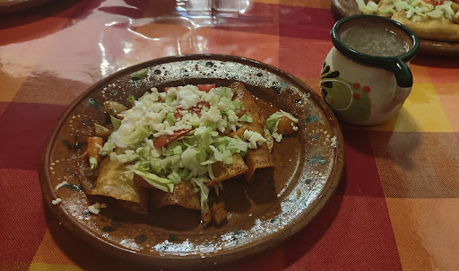 Read moreUna temática un poco cliché pero lo importante es el sazón, en este caso la comida es muy buena con el sabor clásico a la comida típica mexicana, los platillos son de cantidad un poco pequeña pero se compensa con los precios, recomiendo ampliamente las quesadillas fritas que son parte del "menú secreto", asi como los buñuelos que son de lo mejorcito, además de las enchiladas que por el precio y el sabor son muy buenas. El servicio excelente asi como el ambiente muy hogareño, la ubicación es muy buena ya que se encuentra en el mero centro de la ciudad. Muy recomendable si te encuentras por la zona y tienes ganas de algo...
