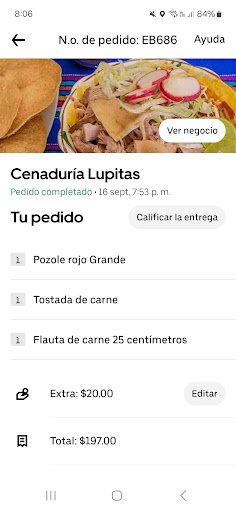Todo excelente y bien empacado, hice mi pedido por uber eats el mero 16 de septiembre de 2024 y todo llego en perfectas condiciones y muy rico. El pozole grande alcanza facil para dos personas y viene muy bien surtido de carne. Les dejo evidencia del pedido y fotos.