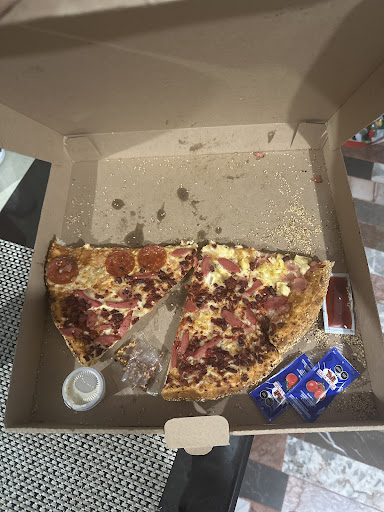 Read moreLlegué a comprar una pizza, me atiende una srta y un joven muy amables pague con tarjeta ya mi sorpresa fue que me dijo el joven en "7 minutos está si orden" si si muy rápido super caliente y deliciosa lo único que yo puedo sugerir es un poco más de atención a el mobiliario de en...
