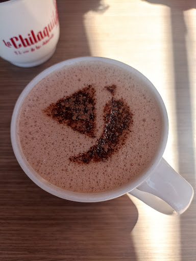 Read moreMalísimo, cada vez está peor. Primero sirven muy poco, solo expanden los totopos para que se vea "más", las salsas de los chilaquiles tanto la de chipotle como los divorciados gratinados (salsa roja y verde) estaban desabridas, cómo que les echaron agua para que rindieran, fuimos en sábado y no había tanta gente como para que ya le hayan echado agua a las salsas para hacerlas rendir, eso nos decepcionó mucho. El café también estaba desabrido, solo estaba "pintado" pero sabía a pura agua con poquita canela y piloncillo pero daba la impresión igual de estar como "rebajado". Lo ubico que estaba rico fue el chocolate caliente (es la foto que subo) y el birote para los chilaquiles porque estaba doradito, pero fuera de eso, una decepción de comida 😥 Además la cuenta nos la trajeron mal, y el servicio si bien es aceptable, deja mucho que desear. Que lastima que estén cayendo así,...