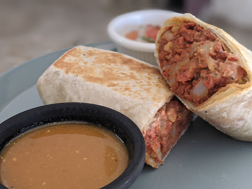 Tacos baja: La versión de los tacos de pescado de Baja California. El pescado es sustituido por tofu. Me pareció una muy buena alternativa. La textura del tofu fue similar a la del pescado. El capeado, el limón, salsa y tortillas disfrazan el tofu, pero a diferencia de los tacos al pastor, estos son más parecidos a la versión no vegana.