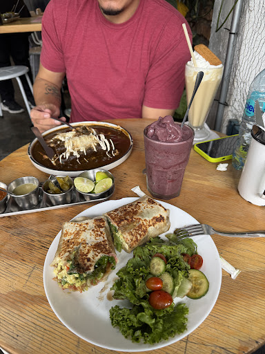 Read moreVery clean and the food was incredibly fresh and delicious. The sandwich I had was excellent, and it came with a magnificent salad. I appreciated that the bread was whole grain. And the people working the counter are super nice too. Update: This place opens early (8:00 AM daily and 9:00 AM Sundays), and I'm convinced it's one of the world's finest vegan breakfast spots. In particular I recommend the molletes (which are served on whole grain bread.) You can get a big glass of freshly-squeezed orange juice for just 25 pesos. Plus, their outdoor tables are perfect to dodge risks during the pandemic. The owners obviously care immensely about serving only fresh, high-quality, vegan food and you can have a very nice breakfast here for...