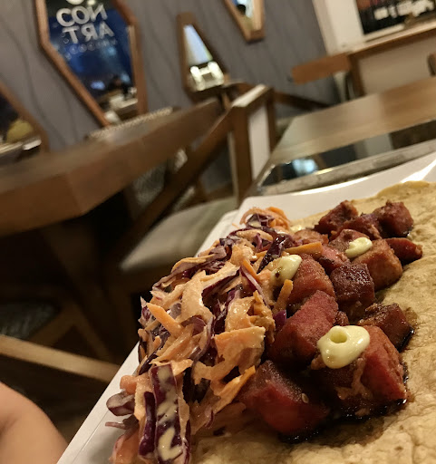 Great 3rd floor restaurant. Friendly service, full menu at reasonable prices. Bright lights & loud music. Comfortable seating with elegant furniture. Recommended !! PS try the tuna tacos...