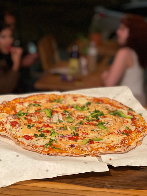 Nuevo lugar en nuestros favoritos de pizza! Afuera se ve como una casa más, adentro hay un pequeño patio muy íntimo con plantitas y musica ambiental. El servicio es buenísimo (agradecemos a Max que fue nuestro mesero por su excelente trato y eficiencia, Paloma su compañera también muy rápida), la comida: pedimos una pizza mitad Dalaia y mitad narcissa (de pastor, deeeelicioooosaaa!) y estuvo deliciosa, la orilla tiene ajonjolí, el tamaño es muy bueno, te dan salsa Pomodoro y hay chile de árbol. Las pizzas especiales van desde los 160 hasta los 180. Hay tres variedades de cerveza artesanal. Recomendamos totalmente. Visitamos en domingo 7.00 PM, no está lleno, cierran a las 11 PM y sirven relativamente rápido considerando que la hacen en el momento. Ingredientes de calidad. Pedimos una pizza, dos cervezas y un agua fresca de coco y fueron cerca de 360 pesos. Excelente. Ah, y hay tres mesas para dos personas en área techada, venden ropa y algo de accesorios...