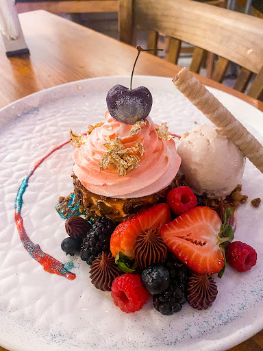 Read moreOMG. Like others, I don't even know where to begin. This was an evening of pure delight and decadence, from start to finish. From the beautiful European salad served on a beautiful plate with the freshest of greens, berries, Camembert encrusted with panko bread crumbs and beautifully browned, candied pecans, and a light, delicious vinaigrette. Then the cream of lobster soup with a half of a lobster in the shell! The cream itself was fluffy and lighter than air, and the seasoning and lobster heavenly. And then there was the dessert. There were three of us and so the staff presented the three desserts on a large board adorned with dabs of delicious chocolate and cream and so beautifully presented. A creme brulee, a chocolate volcano cake with homemade ice cream and a banana cream cake, also with homemade ice cream.