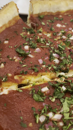 Read moreFuimos en sábado de quincena a las 8 de la noche y esperamos media hora por qué había dos mesas adelante de nosotros, no estaba taaan concurrido, no pudimos probar muchas variedades por qué está llenona la pizza pero elegimos la pizza al pastor y estaba rica, y de acompañamiento unas papas gajo con tocino y estaban muy ricas, aunque me gustarían con más queso amarillo 😁, en general todo lo que se veía en otras mesas se veía muy rico, nos quedamos con ganas de probar la de jamón serrano, la pizza con carne molida (que se me afigura por el sabor de la salsa de tomate que combinaría muy bien), la pizza con boneless y la pizza danko, (las enlisto para ver si podemos ir a probarlas después jeje) váyanse con hambre ya que si están muy llenonas, y eso que pedimos la pizza chica, podría sentirse elevadito el precio pero pues es que si tienen mucho relleno; hay variedad en cerveza pero no tanta, no hay de las clasicas como modelo o negra modelo, más bien más ligeritas cómo Heineken o ultra, pero la michelada les queda rica y hay variedad de bebidas sin alcohol. Vi críticas a estás pizzas estilo Chicago, diciendo que no estaban muy buenas o no sabían a nada, y pues pienso que no están super deliciosas como uno se las imagina por las imágenes de las pizzas con el queso y así, pero están de buen sabor y gran variedad así que me faltará probar las para terminar de juzgar. El ambiente del lugar no me encantó ya que es un lugar pequeño, nosotros íbamos de aniversario y nos tocó sentarnos a lado de una mesa de amigos y andaban muy escandalosos y no se podía platicar bien del todo, sería el uni inconveniente que vería del lugar por qué en si está lindo, pero no...