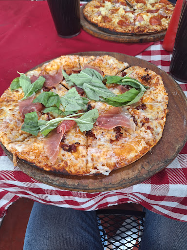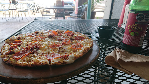 Read moreSon pizzas a la leña como lo indica su descripción (masa delgada) la más común es la mediana con costo de $110 con un diámetro de 30 cm y puedes elegir 3 ingredientes para agregar, si no tienes mucha habré pueden comer dos pero si estas hambriento uno solo se llena con una, me decepcionó un poco ya que pedí uno de los ingredientes con arrachera pero los trocitos agregados eran cubitos tan pequeños como un grano de elote o más pequeños y eran en verdad pocos que la pizza que prácticamente no sabía a este ingrediente, en conjunto el sabor es pasable pero hay mejores. El establecimiento se compone principalmente de terraza y aunque da sombra a las mesas se siente calor. El lugar está justo sobre avenida Camino Real así que puede haber mucho ruido por los autos que pasan en horas picos o a veces casi no pasan autos y es tranquilo. El servicio es rápido 20 min y recibes tu pedido pero si está lleno a veces como 30 min, aceptan...