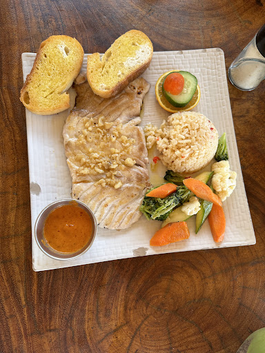 The food was good, and the serving staff was friendly. However, be sure to carefully check your final bill! As I read in other reviews, there was a 5% overcharge. I was able to resolve it before paying. The coconut shrimp could have been large and good, but they were not fresh, so they were fried for a long time. The batter was hard, and you could immediately tell the shrimp inside wasn't fresh. We also ordered the stuffed pineapple, which was delicious. It was topped with mozzarella cheese and filled with a mix of octopus, shrimp, and bell pepper. It came with rice, two pieces of garlic bread, and grilled vegetables cooked in butter, all of which were tasty. Another dish I would recommend is the fillet fish. The type of fish changes based on the day's supply, but it was very fresh and delicious. The major downside of this place is the excessive number of flies. Even when we were just drinking, there were no flies, but once the food arrived, the flies became so persistent that we couldn't eat without constantly waving them away. Another issue is the checkout bill. The restaurant servers also recommend other activities, but they seem to be slightly overpriced. The restaurant offers a boat ride to Yelapa, but the boat has no roof and it seems to take a long time for the engine to start. I would recommend taking the boat you originally...