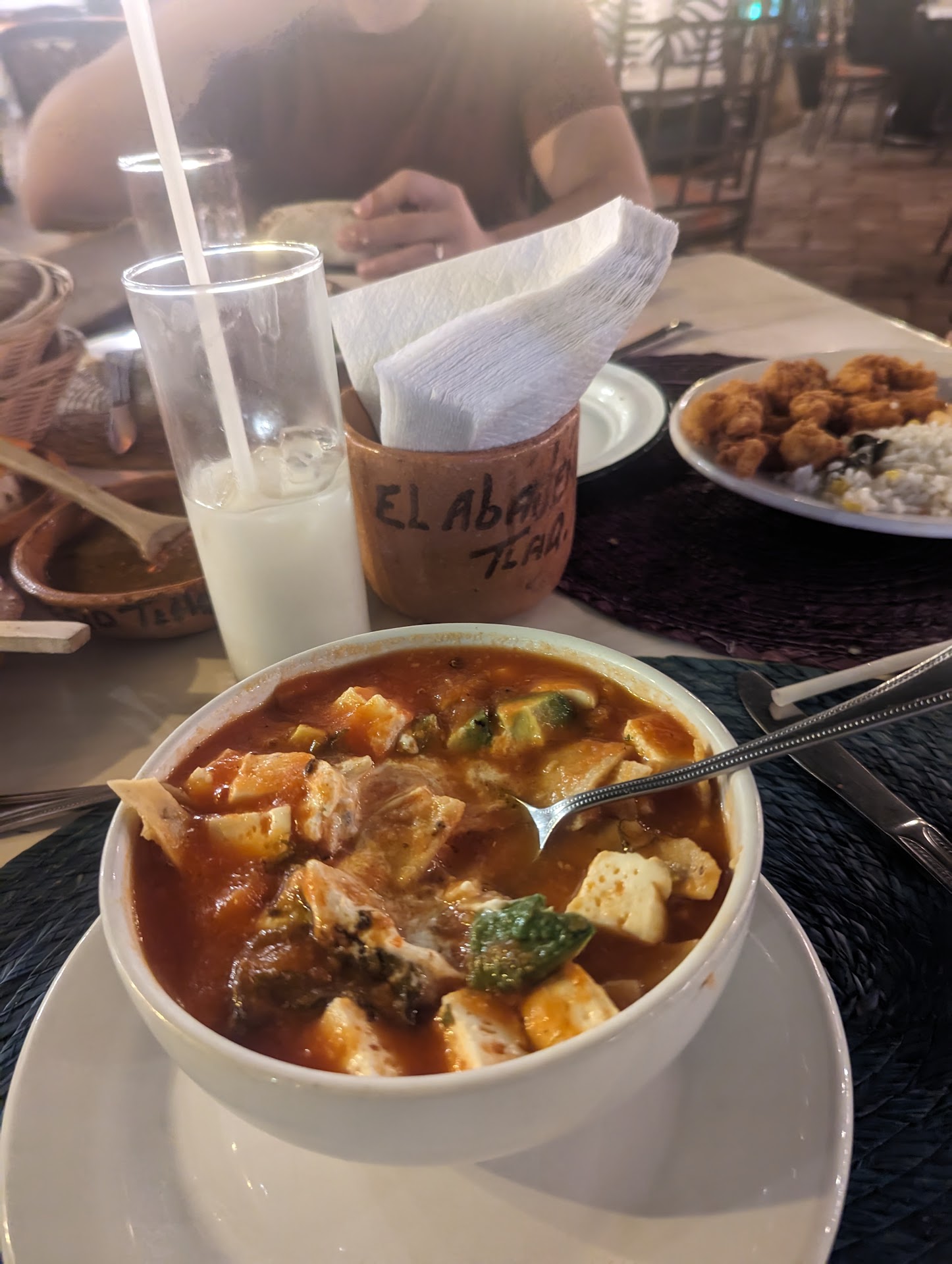 A friend of mine recommended this restaurant. It is a few blocks from the El Parian in Tlaquepaque. The dinning area is amazing. We were seated in an open area with a cover by tree overhang. The tables around us were reserved and we got a chance to sit in a very nice spot.