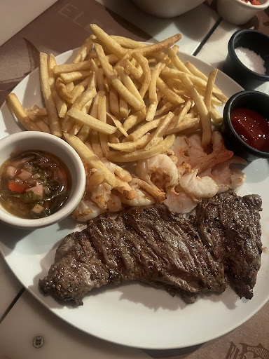 My steak was very flavorful and cooked well. The shrimp was pretty basic, but still delicious. I enjoyed what the server called a chimichurri sauce, though in accustomed to chimichurri bring a green sauce. Either way, it was still delish. The fries were incredibly disappointing- they tasted worse than McDonaldâs fries, as they werenât even salted. This is an unfortunate aspect of the meal as itâs incredibly easy to elevate the fries, even if they donât want to make fresh fries.