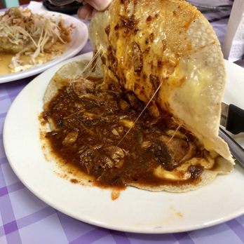 Birria Pork Quesadilla Oh man, this was deee-lish! Imagine tender, shredded pork simmered in a savory red broth, melted cheese, served in a warm corn tortilla. Hell yeah. The immense flavors inside totally masked the nastiness of the corn tortilla and made me moan with each bite. Adding this to my collection "The Best Thing I Ever Ate"!