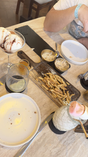 Everything started out well, we were greeted, seated at our table, offered water (which we were later billed for $65 pesos each), and shown a selection of meats. Then I ordered a non-alcoholic Pina Colada cocktail. While I was waiting for my cocktail, my husband ordered a bottle of beer, fries with truffle oil and Parmesan cheese as a main course, and ice cream with roasted nuts and whiskey for dessert.