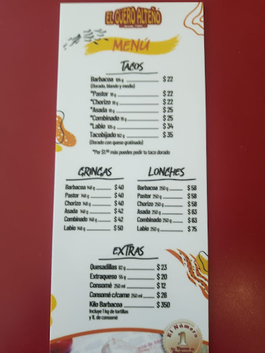 Read moreMuy ricos los tacos. Excepto que tienen pésimo servicio. Nos atendío una señora que tiene la cara rara. Se tardó en atender nos por estar en el chisme con otra. Despues no nos dejo sentar donde nosotros quisimos y eso que estaba vacio el lugar. A la hora de pagar me dijo que si no tenía cambio porque todos los clientes pagan con billetes de $500. Cuando le dije que no, me puso cara e incistio en que pagara con tarjeta aún cuando le dije que no tenía.. Antes no me mando a cambiar el billete. Si no fuera por su pésimo servicio, volvería con...