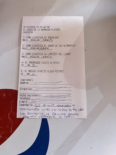 Read morePésimo servicio a domicilio, los tacos llegan aguados y fríos y aparte 1hr y media después de que hiciste tu pedido. Aparte (no está mal) te cobran el servicio a domicilio, que por qué estás a 5km de la sucursal (evidencia que estoy a menos, pero bueno). Si no marco y pregunto por mi pedido ni lo envían por qué todavía después de que marque tardaron 30min más. Y no me quejo del costo del servicio a domicilio pero si avisan pues uno decide si espera o no, pero pues si te llega la comida fría pues no es agradable y menos la espera de 1hr y media por comida...