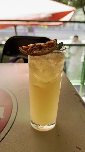 Tacos, beer, chejuino, great music with a bit of a wait, but overall a cool experience! The wait on a Saturday afternoon was about 20 minutes, and we were first taken to a stand-up area to start with drinks, then later brought to a table on the top floor (though I nearly fell on one of the steps—just a warning). I began with a cocktail before transitioning to trying a chejuino (tejuino mixed with beer), which was quite refreshing (8.5/10).