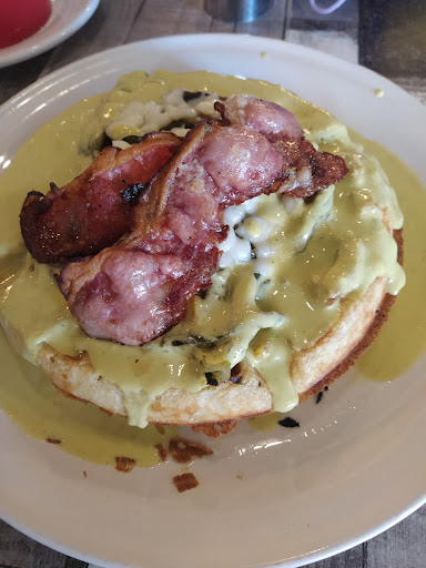 Fui a un desayuno con amigas, y la vdd q nos la pasamos muy bien, estuvimos agusto el ambiente la comida estuvo súper rico algo diferente y rico, pedimos chilaquiles Nayarit q tienen camarones (8pzs) con una salsa chipotle q no estaba picante estaba rica y todo complementaba, venía de complemento frijoles en una tasita de tortilla, y acompañado con ensalada q estaba muy rica también; también se pidió unos chilaquiles patrios q son tipo divorciados por q tienen salsa roja y verde y acompañado de pollo a la plancha y también con frijolitos. También un Omellete saludable rellena de espinacas elote, champiñones, panela y una salsa de cilantro también muy Deli Deli; de bebidas pedimos te chai manzana canela, natural, tizana y jugo de naranja muy ricos la vdd, con el té chai nos encantó no solo el sabor aun q la vdd he probado mejores estuvo decente y rico lo q si de la presentación de ese té chai si fue el mejor , las rizabas también estuvieron ricas agradables al paladar. En al postre pedimos una crepa dulce de frutos rojos para compartir ya q las porciones de los chilaquiles fue muy buena porción y relación calidad precio excelente. La crepa la vdd si eres team dulce la recomiendo pero si eres team salado la vdd mejor pide otra cosa; a nosotras nos gustó esa crepa con compota de frutos rojos bien hecho todo, al final la coronan con una bola de nieve de chocolate y nutella y uff nos voló la mente estaba muy rica pero dulce también , pedimos agua natural para no saturarnos de tanto dulce y fue excelente . El otro pan con cholocate estaba normal el pan nada de diferente a los demás pero tenía ese si demasiado dulce, no pensamos inicialmente q tuviera tanta cosa arriba 😅