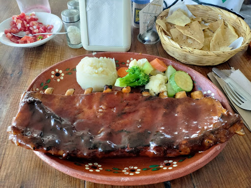 I chose a table and said I would like the ribs. She asked me what I wanted to drink. After asking what waters there were available, she said they have Agua de Jamaica. So I said I'd take that, 1L, please and she had walked 3 meters away before I'd finished speaking. She spoke from across the room, while still walking away, that they don't have 1L , just big and small. So I loudly said grande as she was already into the kitchen by then.
