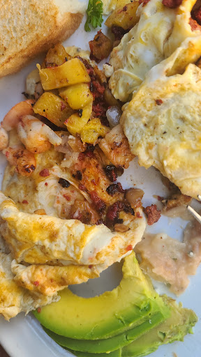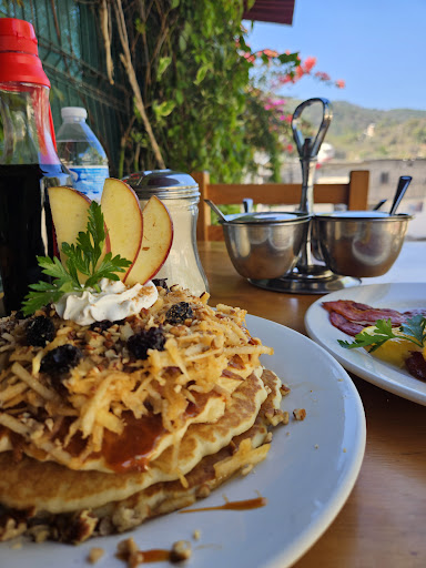 Read moreThis welcoming locality was a beautiful breakfast spot tucked away in the residential portions of Puerto Vallarta. I tried their Venecia hotcakes and sausage. This stunningly designed entree comes with three hotcakes covered in small nuts, raisins, sauce, and more. Topped with cream and sliced apples, the Venecia hot cakes were a scrumptious treat to begin my morning. Along with freshly squeezed orange juice, the team offered tortillas and toppings to complement my meal. The staff were all courteous and friendly. My visit had no language barriers or issues. As an FYI, come prepared to pay with pesos. Debit or credit card is not...