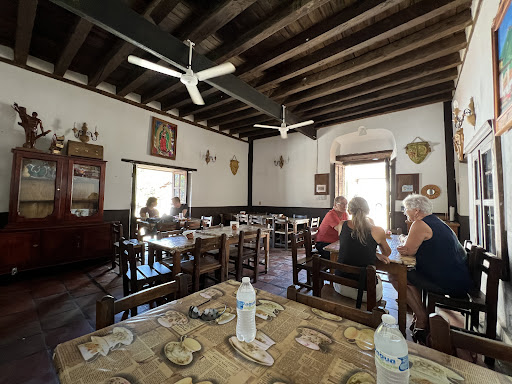 A very nice reasonably priced restaurant open for breakfast and lunch daily except Thursday serving traditional Mexican dishes in a historic setting within central San Sebastian. The dining room overlooks the town through oversized windows framed by the towering Sierra Madre Mountains, usually spotted with low hanging clouds or fog in the afternoons. This is a good family restraunt with an ample high chairs and a children's selection of dishes the young ones would probably like as well. They do serve beer, but no wine or hard liquor. The restaurant is cash only so plan accordingly. Though there is (only) one ATM (BBVA Bancomer) it was not working the day we were there, so keep that in mind if assuming you'll get cash when arriving San Sebastian. I can recommend enjoying a meal at Eva Maria's because the service was very good, as was the food preparation and presentation, the atmosphere was both relaxing as well as inviting, and fit the tone considering we were in a town four hundred years old. The questions l had about the restaurant and the town were answered quickly and with confidence displaying first hand knowledge,. Check out Fonda Eva Maria on your next visit up...