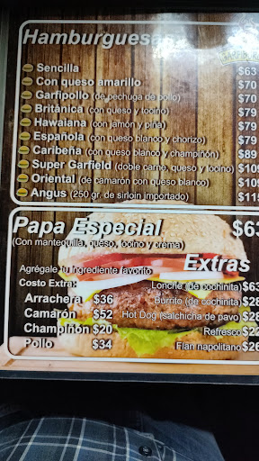 Read moreExcelente lugar para degustar una rica papa o una exquisita hamburguesa. Pero hay un pero, la última vez que fui la persona que me tomó el pedido se comportó grosero, tal vez esperaba ver a Alejandro Fernández o que se yo, pero creo que debe ser más cuerdo y amable con las personas que vamos a este lugar para degustar alguno de sus productos, no debe ser “razista”, los comensales decimos con que atuendo pasar a visitarlos, lo que les debe importar es que aún están dentro de nuestros lugares preferidos pero sobre todo que les...