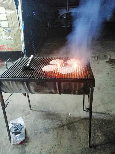 Read moreHamburguesas al carbón, comida sencilla pero muy ricas...chicas, medianas y grandes, son los tamaños q manejan, sencillas o doble carne, tu te las preparas a tu gusto. También venden papas a la francesa. Lo bueno es q todos los dias se ponen. Son muy atentos y wl...