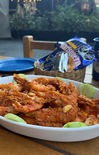 Pedimos también el platillo estrella: los Happy Shrimp. Sabrosos, sí, pero tan condimentados que cuesta distinguir los sabores. El mayor problema es que son para pelar, pero el preparado que le untan a la costra se pega tanto a la carne que pelarlos es una odisea. No hay utensilios para ayudarte, así que acabas usando las manos, perdiendo media porción en la cáscara y la otra en la pelea.