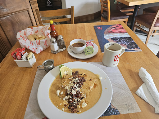 Read moreIt's not my first time here, but visiting again after many years. There's a very rich variety of dishes to choose from. I think it's only for breakfast time. I tried the chilaquiles verdes and the hotcakes selva negra. All the plates are very well served, it's a large portion, so if you don't eat much you might want to share. Chilaquiles are really good, the tortilla chip is not soft and not super crunchy, just in the middle and the sauce is well balanced too. The hotcakes are really soft and are not sweet but you can taste the chocolate flavour. A good amount of strawberries accompany the three layers of hotcakes with whipped cream (crema Chantilly) that is bathed in a sweet strawberry sauce. The food took a lot of time to be served, probably 20 minutes and they didn't serve the coffee at least. The waiters try to do their best and the service that they provide is good, you can see that they are trying to do their best and they are in a good mood. I recommend and...