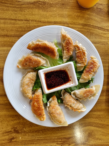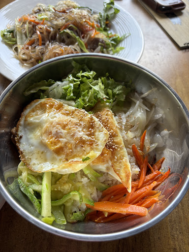 Read moreAl llegar te encuentras con una plaza pequeña de unos cuantos locales, subes las escaleras y a mano izquierda ves mesas y una cocina, no esperas mucho a primera vista. Al llegar te recibe con una sonrisa una mujer coreana. El Menu no es muy grande, se conforma de unos 20 platillos en total, de bebidas lo básico, 2 variedades de té y refrescos embotellados. Nosotras pedimos una orden de dumplings de carne (no aparecen en el menú pero en las paredes tienen fotos con nombres de los que te puedes apoyar para ordenar) una orden de japchae (fideos de arroz y verduras) y Jeyuk bokum (carne de cerdo picante) Las porciones son muy bastas, decidimos poner todo al centro y compartir y que grata sorpresa nos llevamos. El sazón es realmente bueno, muy bien balanceados los sabores y te dejan bastante satisfecho. Definitivamente regresaremos. Son dos personas las que atienden así que el servicio no es el más rápido del mundo. Si está lleno de comensales pero definitivamente la espera valdrá...