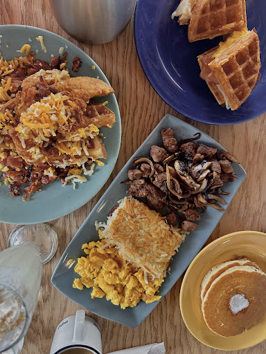 Llegue y pedi una silla para mi bebé de 12 meses y me dieron un booster seat sin sujetador, desde ahí empece a cuestionarme el servicio, como creen que es seguro que un niño de apenas 1 año se siente en un banquito sin harness? Y si habia sillas. Pero decidi ignorarlo y mejor abrazar a mi bebé, desde que entramos se sentía muy caliente todo el restaurant, como sauna, esto fue el domingo 12 de Oct 2026 a las 9:30am, no dimos mayor importancia y ordenamos, cada orden llego con almenos 10 minutos de diferencia, ya habia comido 1 cuando llegaba el plato de otro, jamas se nos ofreció más cafe, más bebidas, más comida o se nos preguntó si necesitabamos algo más, la mesera no se aparecía ni daba rondines, era imposible de encontrarla, cuando finalmente pasó por nuestro pasillo, 4 mesas al mismo tiempo pedimos la cuenta porque ya rato nos queríamos ir, mi esposo nisiquiera quizo comer, lo tuvimos que pedir para llevar, porque era incómodo que los demas esperaran en ese calor extremo mientras otro apenas iba a empezar con su plato, por la diferencia de tiempo que nos entregaron los platos, cada que alguien terminaba mejor se salia un rato a la plaza, asi nos separamos durante el desayuno para soportar, ibamos súper contentos a desayunar en familia con la simple intención de pasarla agusto y se torno en un infierno de calor extremo, no pienso regresar en la vida, el calor a ese nivel no lo soporto y si la excusa es que algo estaba descompuesto si es que es ese el caso, eso no justifica el pèsimo servicio que recibió no solo mi mesa si no todo mi pasillo, todos nos veiamos a las caras como coincidiendo que esto estaba simplemente mal, servicio le doy un 0, Ambiente le doy un 1 de 5 solo porque estaba limpia la mesa, la comida estaba buena, pero por ese precio voy a un sitio con mejor atención o más bien que me presten atención y sin temperaturas de Sauna, yo no lo recomiendo bajo ninguna circunstancia, es el peor Ihop que he visitado en toda mi vida y he ido al menos a 15 por todo Norte america y Centro America.