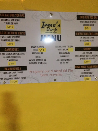 We went to Irma’s restaurant was closed. Irma walked us down to another restaurant so we could get some food but they were also closed. Come back with me, Irma said, and I’ll cook you something good!! Her husband and son were in the dining room relaxing and welcomed us in. We enjoyed great margaritas, barbecued ribs, and the best hamburger EVER!! We highly recommend Irma‘s restaurant for the food and the hospitality! Especially fun for us with hurricane John approaching and rain falling , all the power in Paso Ancho went out just as we were served! Irma brought out candles and super bright flashlights and we had a wonderful candlelight dinner experience! Rain or shine, we highly recommend Irma‘s...