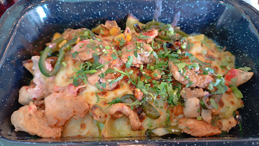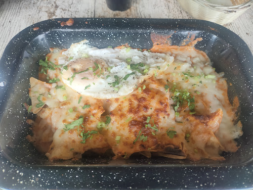 Place seems a bit barebones, but okay. Service is good, waiters are attentive and kind. Food, not the best, not worth it considering that it is not cheap. I had the arrachera chilaquiles and they were not bad, but not great either. Flavor is good, but I find the totopos make a paste with the cheese and sauce, its a bit unpleasant if you dont like very liquidy food, as I do. Feels like it needs a more solid consistency. The portion looked really good when ordering but there was not a lot of meat on the plate when it arrived, unfortunately I dont think...