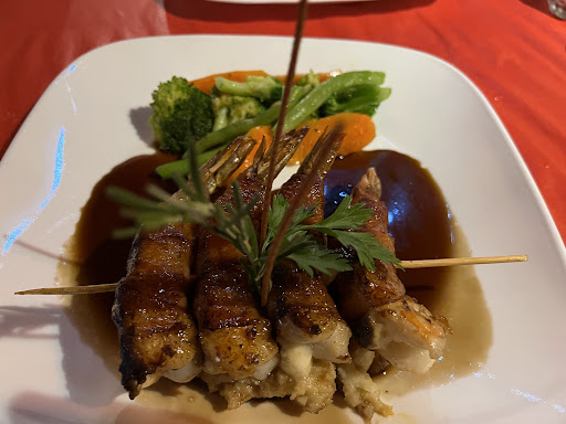 I ordered a fish filet stuffed with shrimp and (bay) scallops with a béchamel sauce, and sautéed veggies. Although tasty, the fish was slightly overcooked and my food came out of the kitchen luke warm. Had someone come by to ask how everything was, I would have mentioned that it was not hot, but no one came to check on us. My dining companion’s fish was also overcooked, and he felt the dish was swimming in sauce. The veggies were very basic. Sautéed carrots and broccoli…. Something I would make on a weeknight for a quick meal, next to a chicken breast. No thought at all given to them. Just filler.
