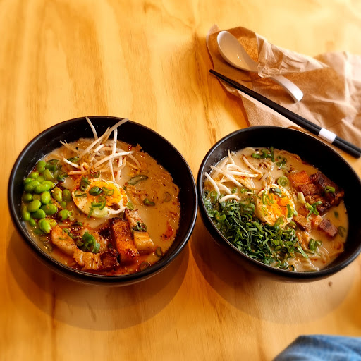 Tienen algunas opciones de ramen o puedes armar tu plato. El sabor del ramen es muy bueno, en el tonkotsu puedes percibir un sabor a ajonjolí, a mí me ha gustado. Los dumplings de cerdo son deliciosos, también ofrecen paquetes de 24 piezas congeladas para preparar en casa, una excelente opción. Además ofrecen algunas opciones poco tradicionales como chicharrón, chamorro, pato, pollo búfalo o pollo teriyaki.