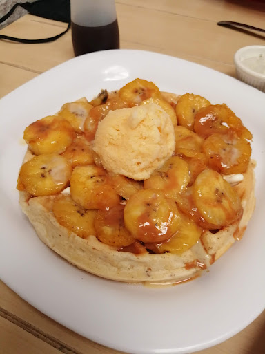 Read moreEste lugar es increible para compartir ese cafesito de mañana o media mañana con tus amig@s y familiares. Es super lindo, y te da esa sensación acojedora. Yo ya tenía la experiencia de conocer otra sucursal, y esta vez decidimos ir a esta sucursal ubicada cerca de la Glorieta Chapalita. Aunque se llaman igual, y me atrevo a decir que el mismo menú, el concepto es algo diferente. Ya que este es en un espacio cerrado y con musiquita de fondo. El menú es una especie de pasaporte y la variedad de wafles de verdad es im-pre-sio-nan-te!! De mis favoritos sigue siendo el Edimburgo (salado) y el Dublin (dulce). Si no te gusta mucho lo dulce este último no es para ti. En cuanto al precio creo que es accesible. Ordenamos 2 wafles, 1 chilaquiles y 2 bebidas y fueron poco mas de 300 pesos. Lo unico que no me gusto del todo, es que tienes que esperar algo de tiempo y se tardan un poco mas de lo normal. Pero creo que es normal, ya que el establecimiento es medianamente grande. Esperamos alrededor de 45 min entre que llegamos, nos dieron mesa y pusieron nuestro plato en la mesa. Lo bueno es que si no quieres esperar, puedes hacer reservacion y todo será algo mas rapido. Obvio en esta ocasión yo no llevaba reservacion, y por esta razón nos toco esperar. Es delicioso, de esos lugares que tienes que visitar por lo menos 1 vez en tu vida. Y claro que una vez que lo hagas, estoy segura de que...