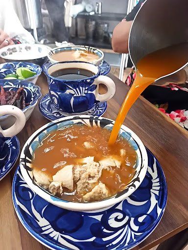 Lo que puede mejorar ⛈️ En cuanto a los aspectos que pueden mejorar, sería excelente que tengan otro modo de colocar la cebolla, la mejorana, los chiles etc, porque la mesa se llena muchísimo y queda poco espacio para el plato la taza y las tortillas. Me encantaría que tuvieran opciones de paquetes como "café ☕ menudo y un aquesadilla por $ tanto". En las cartas no hay mención sobre el el costo que podría tener el caldito extra (si es que lo tiene, sino también mencionarlo).