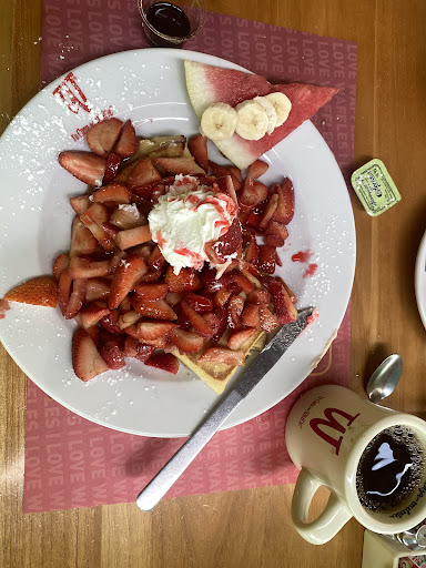 En general todos los platillos son muy ricos, cualquier waffle que pidas seguro estará rico, las bebidas también son ricas , nos gustó bastante el lugar sin duda volvemos a regresar, los precios son bastante justos para las porciones que sirven. Lugar súper recomendable si vas a la Ciudad de...