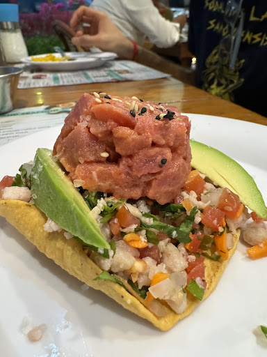 Read moreThis is an easy walk from our hotel as many other restaurants along the marina Vallarta. We got the saffron rice with seafood fresh tuna tostada. The seafood tasted really good and the fresh tuna didn’t have an overwhelming raw flavor, which is a surprise. Recommend getting a table inside where it’s cooler and you can avoid any cigarette smoke while you eat. The service was decent although they cleaned up Our dishes the second we finished our bite and didn’t really leave any room to wait around. I felt a bit rushed. A little bit more on the pricey end compared to some other restaurants, and because I felt rushed out of my seat, probably wouldn’t return an opt to try another restaurant in the...