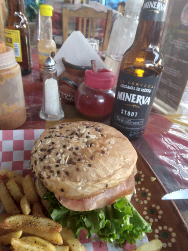 This is a covered, outdoor restaurant located in a nursery/plant store. Overall the atmosphere and service was good. The tables and chairs are uncomfortable. The construction of the tables does not all a tall guy like me to stretch my legs, and the chairs are straight backed. The food was only "ok". I ordered the Hawaiian hamburger, fries are extra (in the photo) They do have artesian beer, which is not common in tonala. The stout I ordered was very good. Maybe worth a visit if you are in the area? But I don't think I'll...
