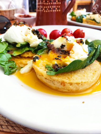We sat in the outdoor area, which had a great, relaxed atmosphere. Perfect for enjoying breakfast and people-watching. Service was friendly and attentive, and prices are very reasonable for the quality and portions.