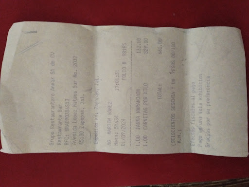 Read moreFui con mi familia que vino de visita a Jalisco, pensando que comería unas deliciosas carnitas, por los comentarios e imágenes que se muestran, me fui decepcionada, tanto del servicio como de la comida. Pedí surtido y cueritos; en lo surtido era más tripa y riñones que carne, la tripa sabía a porquería y los riñones ni que decir; la verdad los dejamos en el plato... Y el servicio nos hicieron sentir mal, como si no fuera a pagar... Y seguiría diciéndoles... Fue mi experiencia y jamás volvería a ir... Mejor nos hubiéramos ido con carnitas Alex que está a la vuelta, pero a veces uno se va por la fachada y por querer llevar a la familia a un lugar...