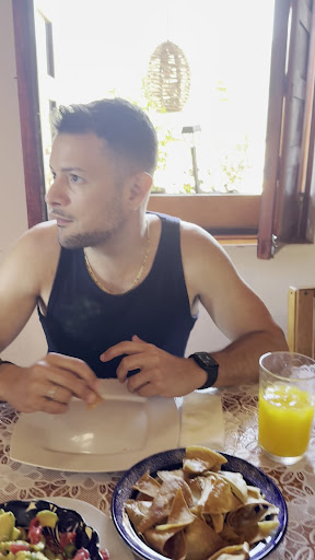 Hostess, Esperanza, is super nice. Gave is a free tour of the street with historical insights. Like most places in San Sebastián del Oeste, there are no screens on the windows. So expect flies. They put cinnamon in the coffee. I recommend asking them to omit cinnamon. You probably think, since it's called a cafe, that there's an espresso machine. Think again. Cafe de olla is it. There's a translation glitch in the menu. Huevos Estrellados are sunny side up. But they have it aligned with scrambled. Scrambled are revueltos. They were very accommodating when I told them sunny side up wouldn't cut it. Unlike places in the U.S., when they sell you hot cakes with fruit, they give you actual sliced bananas and apples, not some topping from a can. Taquitos were great and portion of guacamole was exceedingly generous. You can see the sign from the street in the main square, but if you go up the front steps, you just get a government office. You need to circle around the back on the right and go up some steps. Ask for real cream for the coffee,...