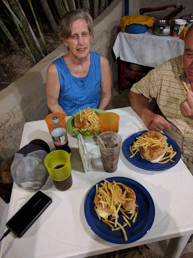 Read moreBimbollo enorme para un pedacito de carne que trae,papas mega doradas que parecen hechas un día antes, las hamburguesas traen un palillo adentro para sostener la verdura,te imaginas que trae uno pero nooooo. traía dos escondidos lógico mordí uno, todo sin sabor, lo único rescatable el agua de piña y eso no fue todo pedí la hamburguesa que quedó para llevar y pues no me agregaron las papas que quedaron.😞 Ha y para cerrar con broche de oro las meseras cenando a las 8:30 ni sus luces por si se ofrece algo, el chico que hizo las hamburguesas fue el responsable de recibir la queja. No lo recomiendo ya que bajo...