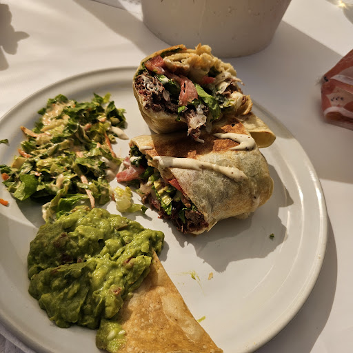 Read moreFood- I had a burrito and it was fantastic with grilled onions, mushrooms, etc along with the meat. Generous size. Service is not great - they do all their business in 3 to 4 hours. So this place gets packed and they get backed up. And many ways it's not their fault, but still the service isn't great. We ordered a bottle of wine, pina colada and a margarita. The margarita never came. We asked about it. Never came. We ordered another margarita. Never came. So we went to the bar and ordered it there. I also asked for silverware (the salad, guacamole, etc - never got it. I used the two tortilla chips as spoons to eat my salad and put guac on the burrito. Not great. This is the spot for...