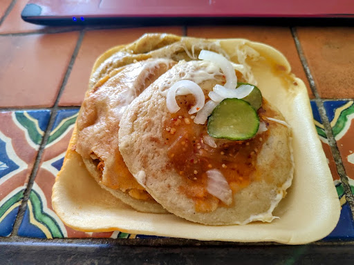 NADA RECOMENDABLE!!! No se por donde empezar para decir lo malo que es el lugar 😒 Primero, llegamos y nadie se acercaba a tomarnos la orden o atendernos, se tardaron como 15 min o más en ir a tomarnos la orden siendo que no habia casi comensales ademas de que se veian varias mesas sin limpiar aún estaban los platos sucios en varias mesas total fue un mesero el cual parecía que se acababa de cortar la mano con algo y así con la mano ensangrentada nos tomó la orden 😬 (eso no fue muy higiénico de su parte) La comida no está buena ni mala solo x, las gordelicias del mercado de Tlaquepaque me encantan siempre pido mole con arroz pero aquí estaban muy insípidas 🤷♀️ Por último, cuando pedimos la cuenta nos dieron un total más alto del que nosotros sacamos según los precios de la carta, cuando mi esposo se acercó a caja a preguntar porque no nos cuadraba la cuenta, la mujer de la caja le dijo que era porque nos había puesto las gorditas en un paquete que incluía postre, que escogieramos un postre 😂 obviamente le dijimos que no queríamos ese paquete y pagamos solo lo que consumimos pero si no te pones listo te ensartan...