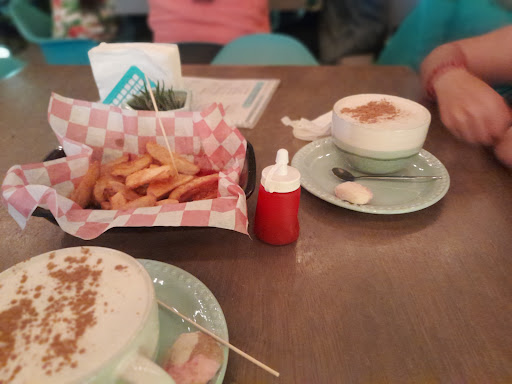 Es un lugar bonito, bien ubicado frente al malecón de Jamay, con una vista hermosa y de noche luce mágico con las luces. La comida es buena, aunque sinceramente no les recomiendo mucho la pizza, pues no es tan crujiente y a veces no está muy bien cocida, de ahí en más excelente los baguettes y las papas, además de los postres. El café es bueno, pero siento que les hace falta mejorar en otras bebidas, como el Chai, casi no tiene sabor pues sabía más a leche caliente con espuma y no se saboreaba la esencia, por lo tanto creo que tanto las bebidas como alimentos se pueden mejorar en cuanto a sabor, pues la presentación es bonita y con las bebidas calientes te dan una galletita. La atención es buena, rápida y son muy amables, además cuentan con juegos de mesa, por lo que Es un lugar ameno para pasar el tiempo con la familia o amigos, pudiendo llevar incluso a...