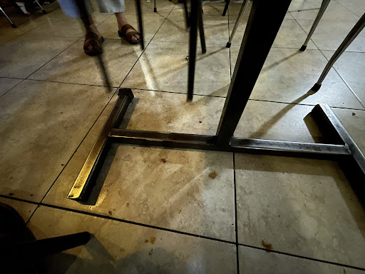 De los puntos por mejorar está la limpieza, parece que el piso no lo limpian en todo el día hasta que termina el turno así que probablemente en tus pies tengas los restos de comida de algún platillo que se cayó hace horas. Cuando llegue me cambié de mesa porque en la que había elegido inicialmente estaba muy sucio el piso y al salir me fijé y seguía igual.